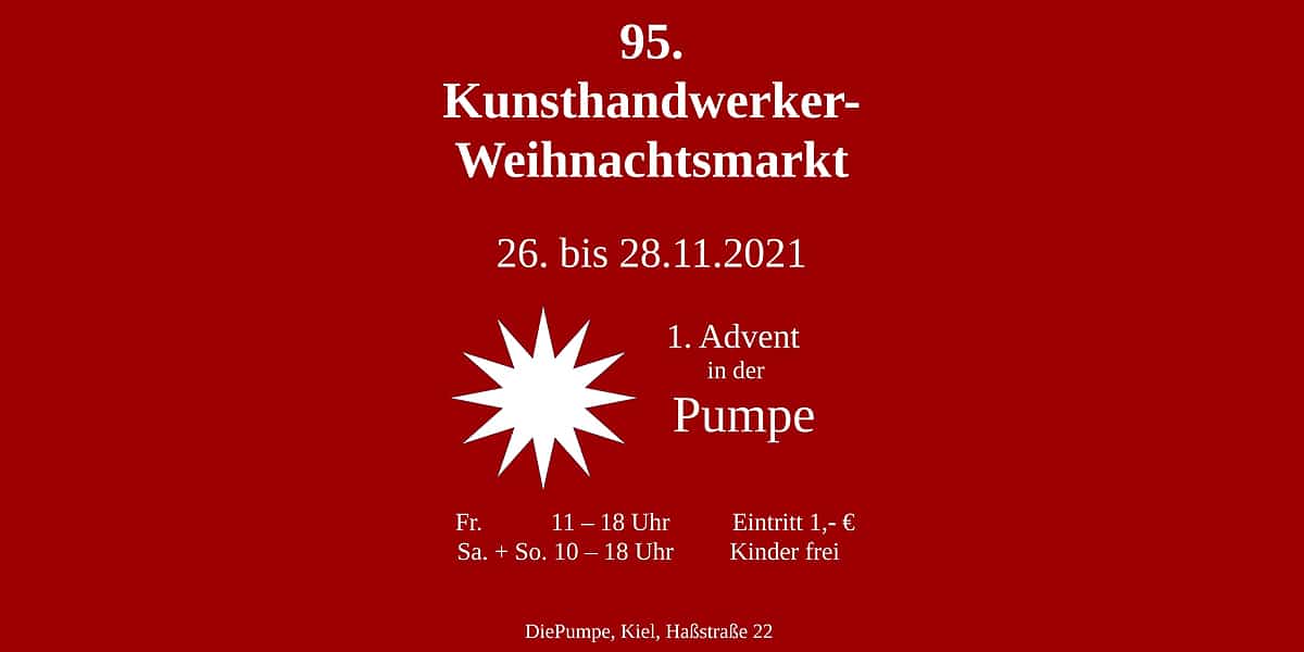 Am Freitag den 26. November 2021 öffnet der älteste Kieler Kunsthandwerker-Weihnachtsmarkt zum 95. Mal seine Tore. Seit 1979 findet er in den Räumen der Kieler Pumpe statt. Die Aussteller kommen