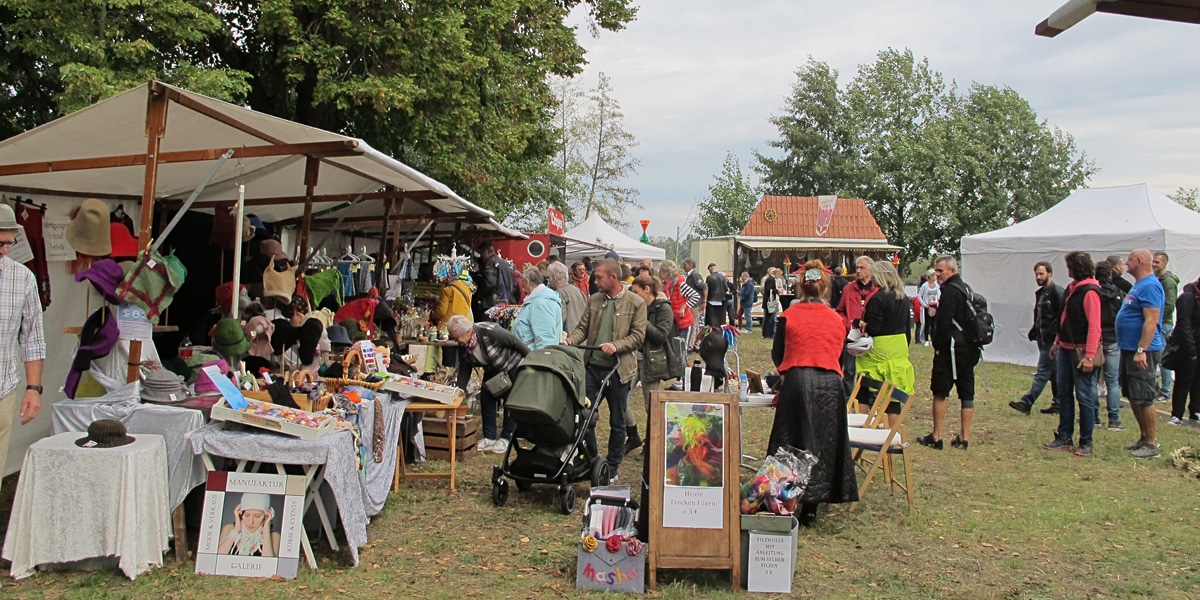 Es gibt kunsthandwerkliche Verkaufsstände, Mitmachaktionen für Kinder und kulinarische Angebote.